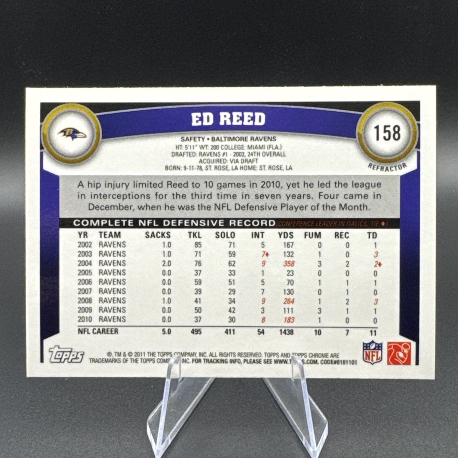 2011 Topps Chrome - Ed Reed #158 Refractor