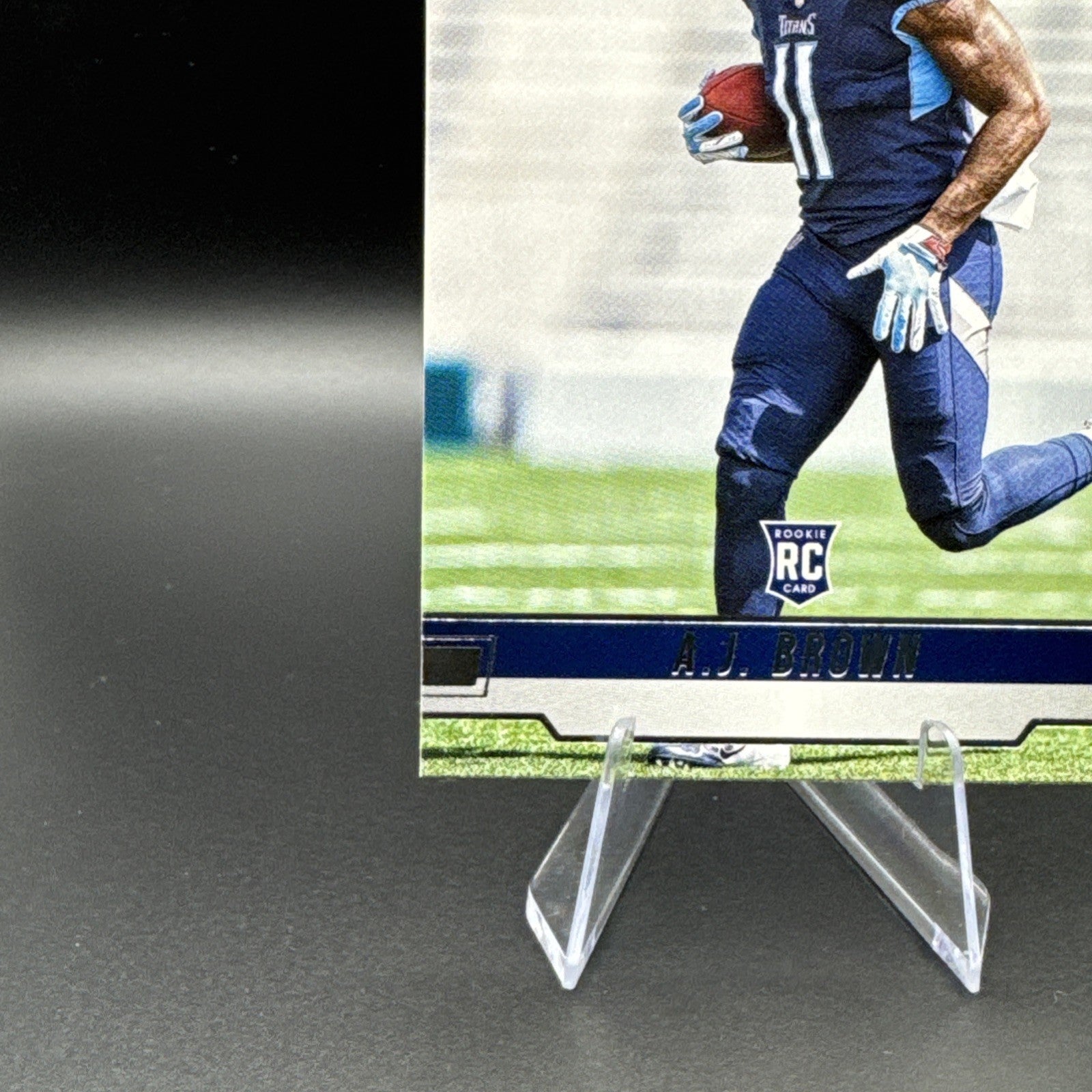 The product is a 2019 Panini Prestige Rookie AJ Brown #253 trading card. This single card features A.J. Brown, a rookie player for the Tennessee Titans in the National Football League (NFL). Manufactured by Panini America, Inc., the card is an original English language release with a base parallel/variety. It is a standard-sized sports trading card with the rookie designation, making it a desirable collectible for fans and collectors alike.