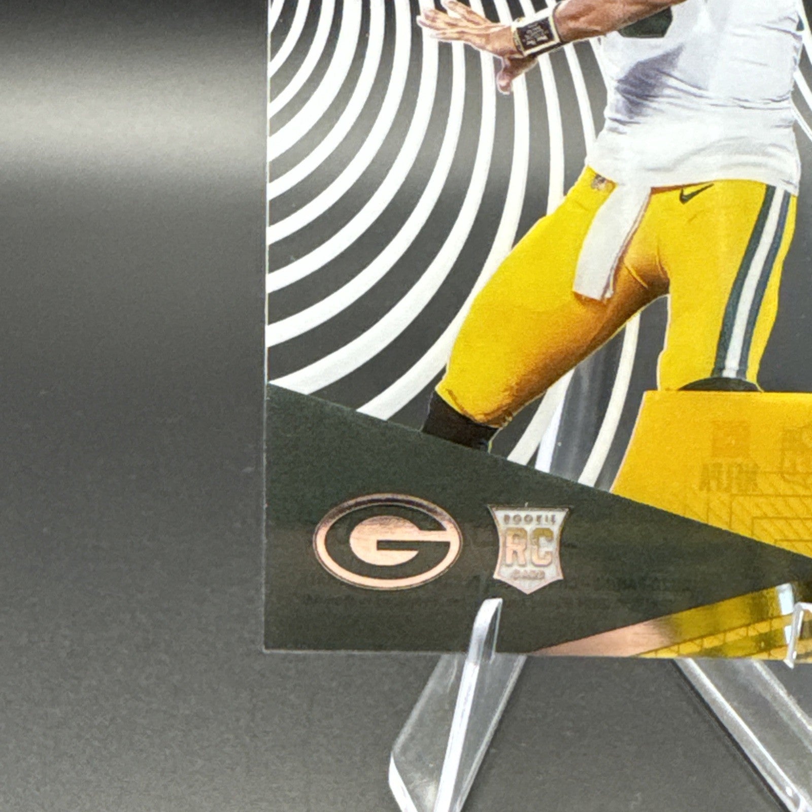 The 2020 Panini Chronicles Football Clear Vision JORDAN LOVE Rookie trading card features the up-and-coming quarterback for the Green Bay Packers in his debut season. Part of the Clear Vision Rookies insert set, this card showcases Love in a base parallel variety, making it a sought-after collectible for fans and collectors alike. With its unique design and rookie designation, this Jordan Love trading card is a valuable addition to any sports trading card collection focusing on the NFL and the Green Bay Packers.