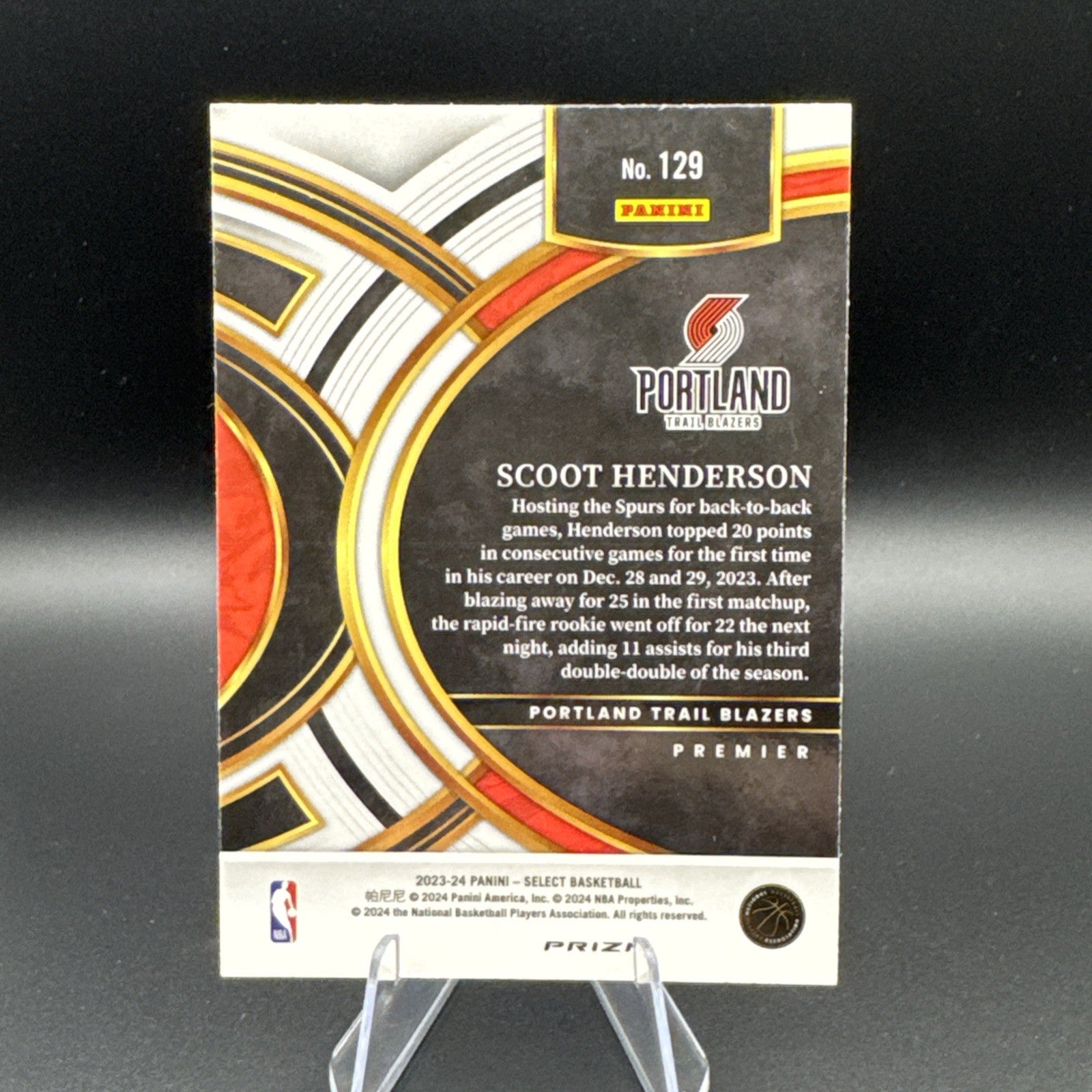 2023-24 Scoot Henderson Panini Select Red Wave Premier RC #129
