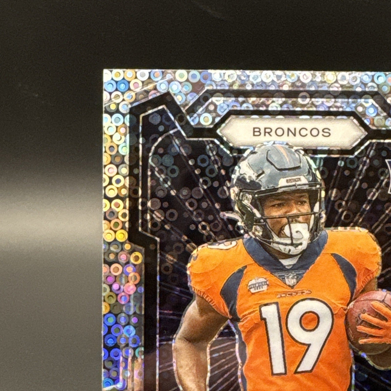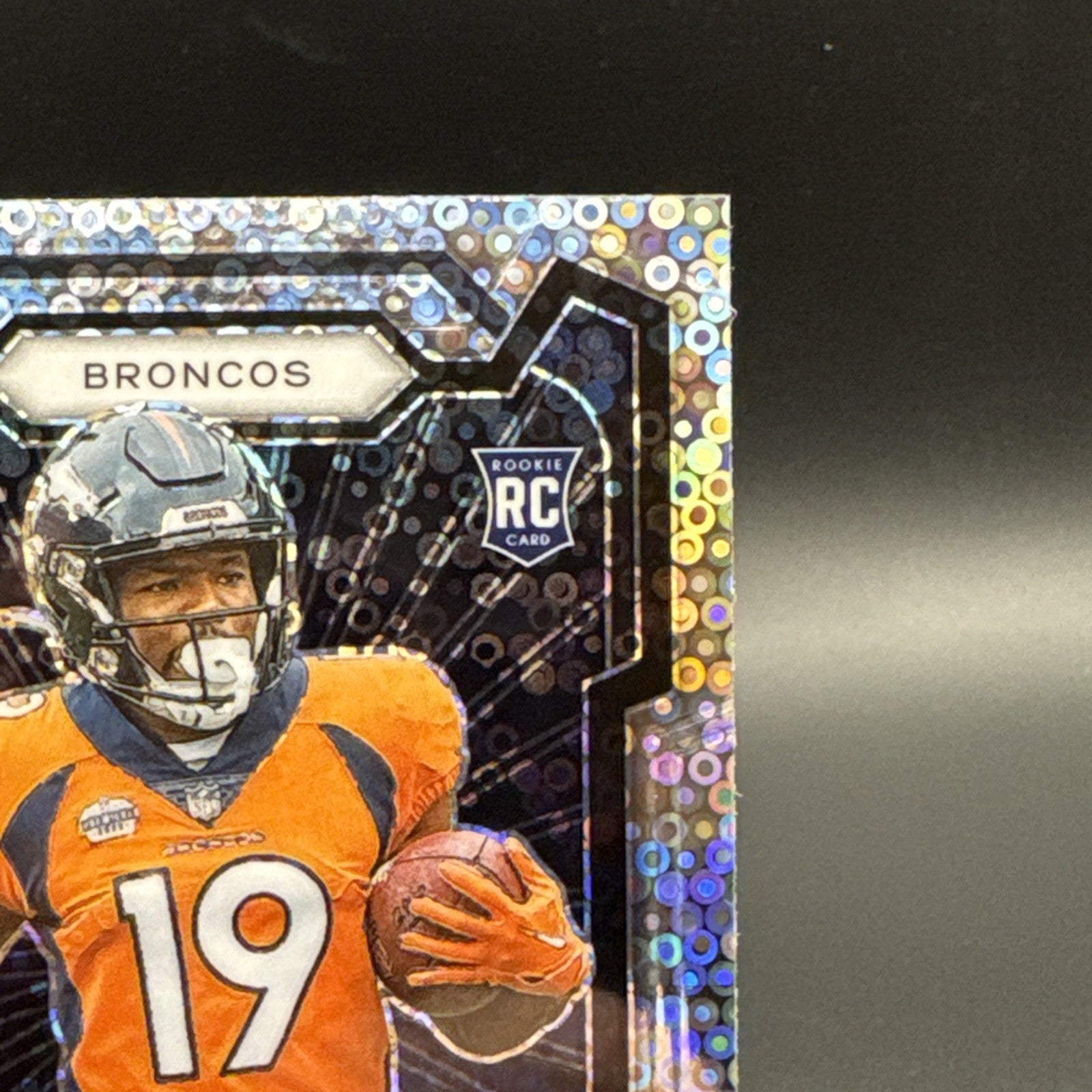 The 2023 Panini Prizm Rookie Marvin Mims #318 No Huddle Prizm trading card is a standard-sized sports trading card featuring the talented football player Marvin Mims from the Denver Broncos. This original card is part of the 2023 Panini Prizm set and is made of card stock material. With a focus on the National Football League (NFL) and the upcoming season, this English-language card is a must-have for football fans and collectors looking to add a piece of sports memorabilia to their collection.