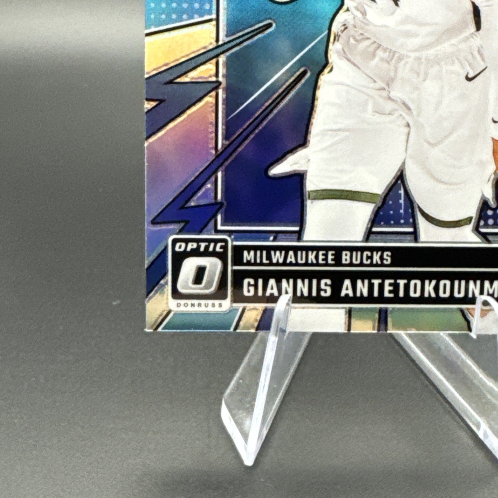 The 2024-25 Panini Donruss Optic My House Giannis Antetokounmpo #5 Holo Prizm trading card is a highly sought-after collectible featuring the talented basketball player Giannis Antetokounmpo from the Milwaukee Bucks. This special card is part of the My House insert set and showcases a Holo Prizm parallel variety, making it a unique and valuable addition to any sports trading card collection. Produced by Panini, this card is sure to be a standout piece for NBA fans and collectors alike.