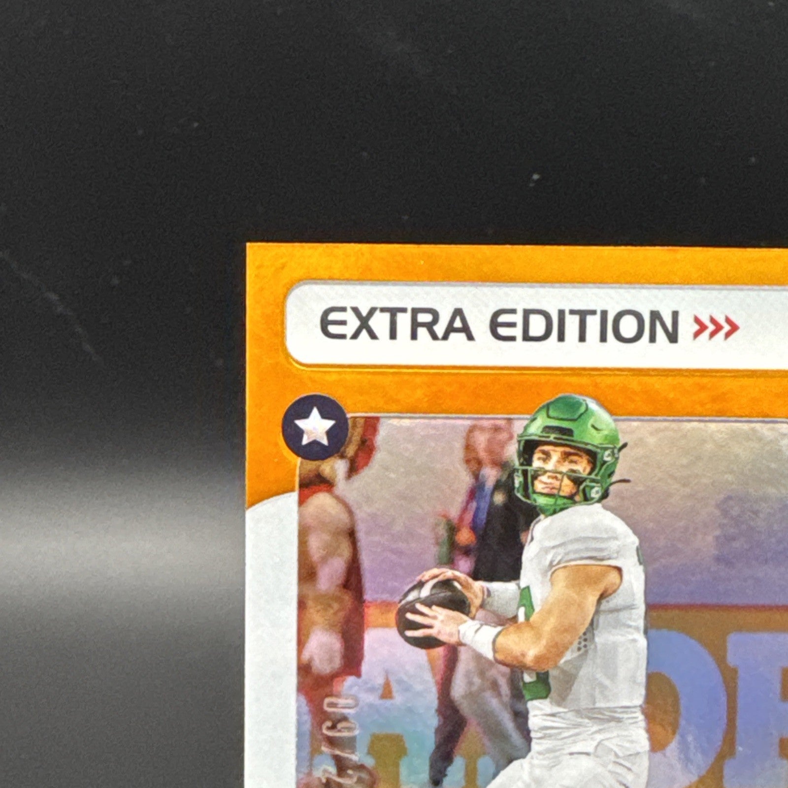 The product is a 2024 Panini Donruss Extra Edition Bo Nix Orange Rookie Card #16 featuring the Denver Broncos. This standard-sized trading card is made of card stock and is an original release from Donruss. It is part of the 2024 NFL season collection and is an English-language card. The card is not autographed but is classified as a rookie card, making it a desirable item for football collectors and fans of the Denver Broncos.