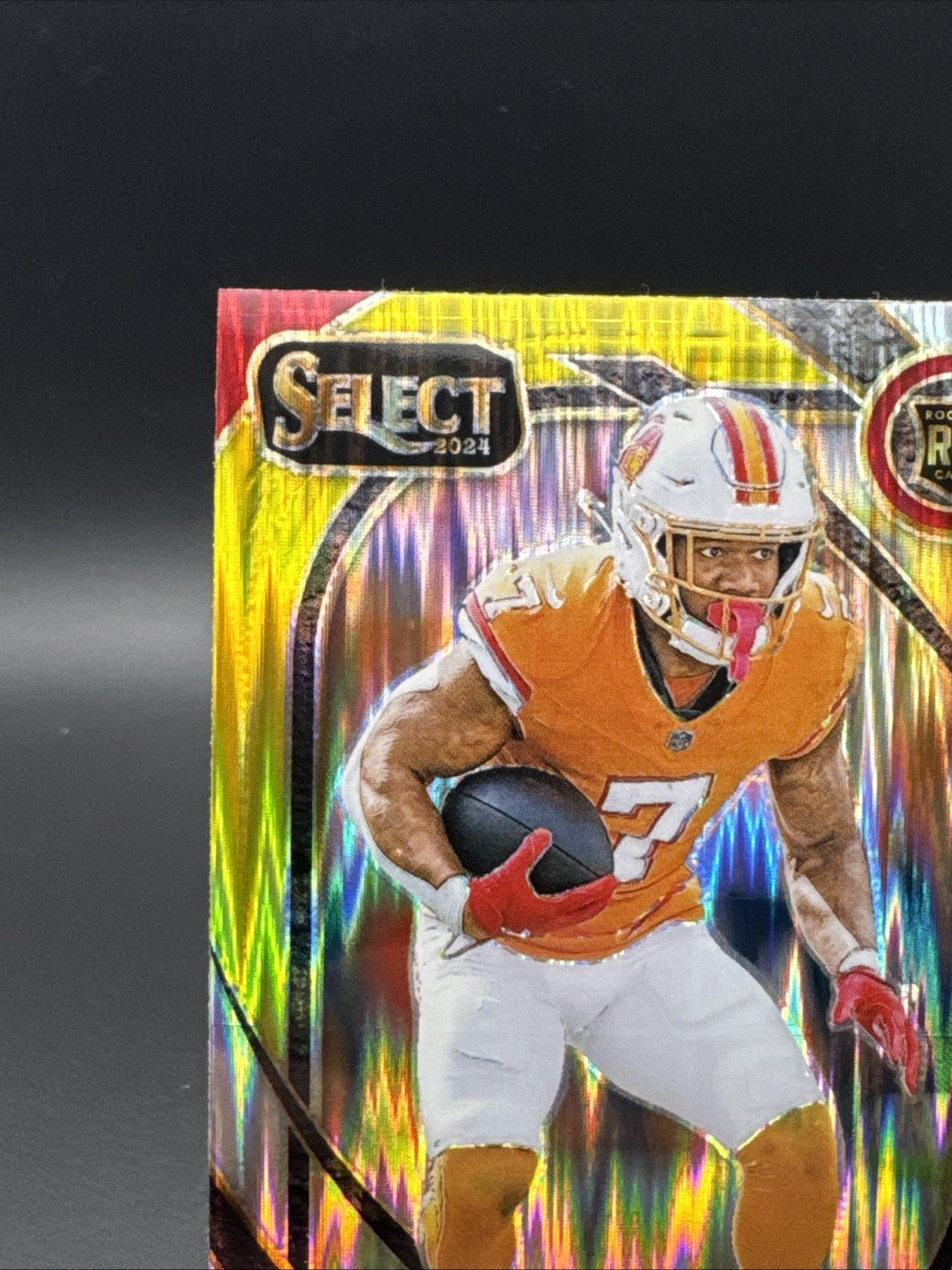 The 2024 Panini Select Club Level Bucky Irving #239 Red & Yellow Shock Prizm trading card is a highly sought-after collectible for football fans and trading card enthusiasts. This rookie card features the talented player from the Tampa Bay Buccaneers in the National Football League (NFL), making it a valuable addition to any sports card collection. With its exclusive red and yellow shock prizm parallel variety, this card stands out as a colorful and eye-catching piece that is sure to be a standout in any collection.