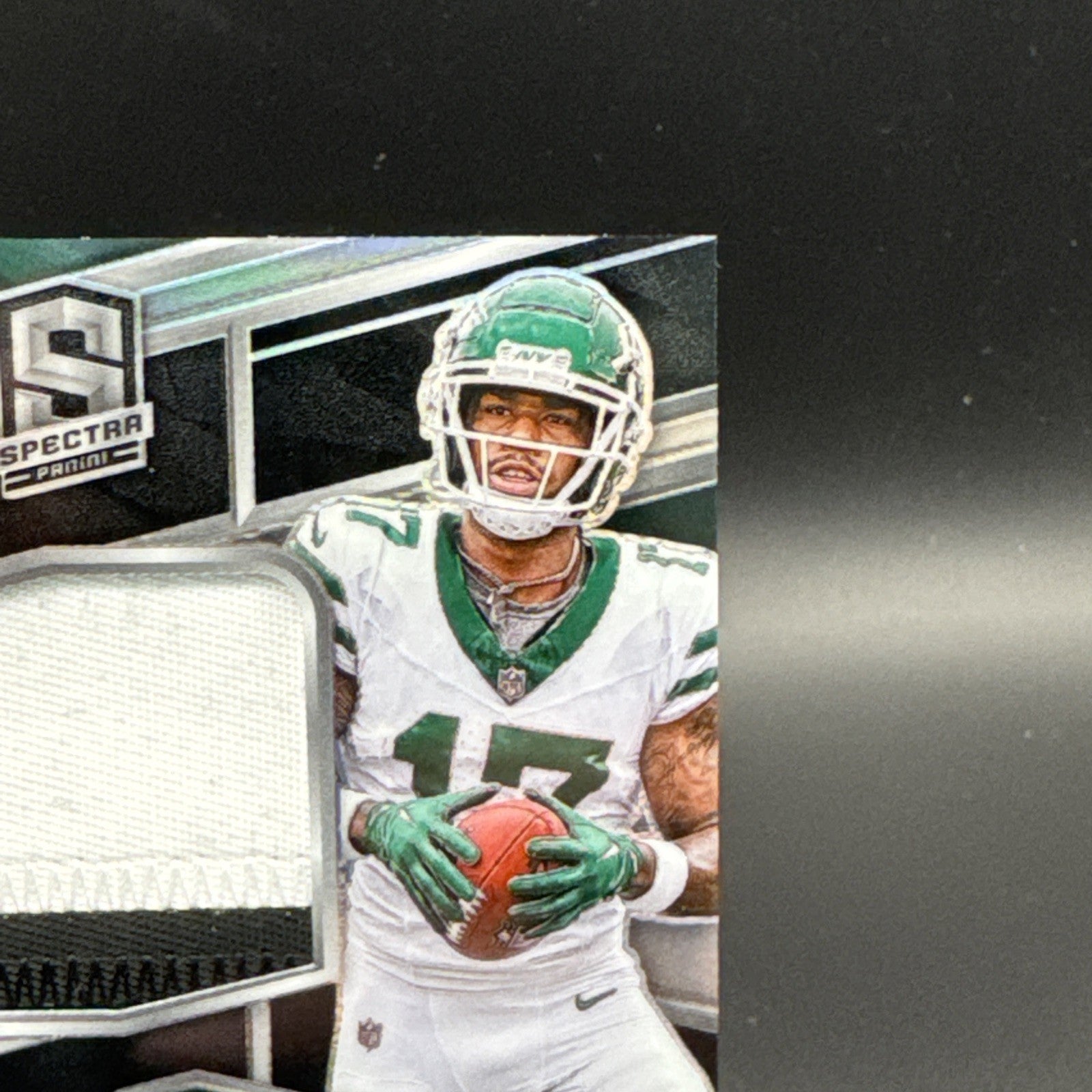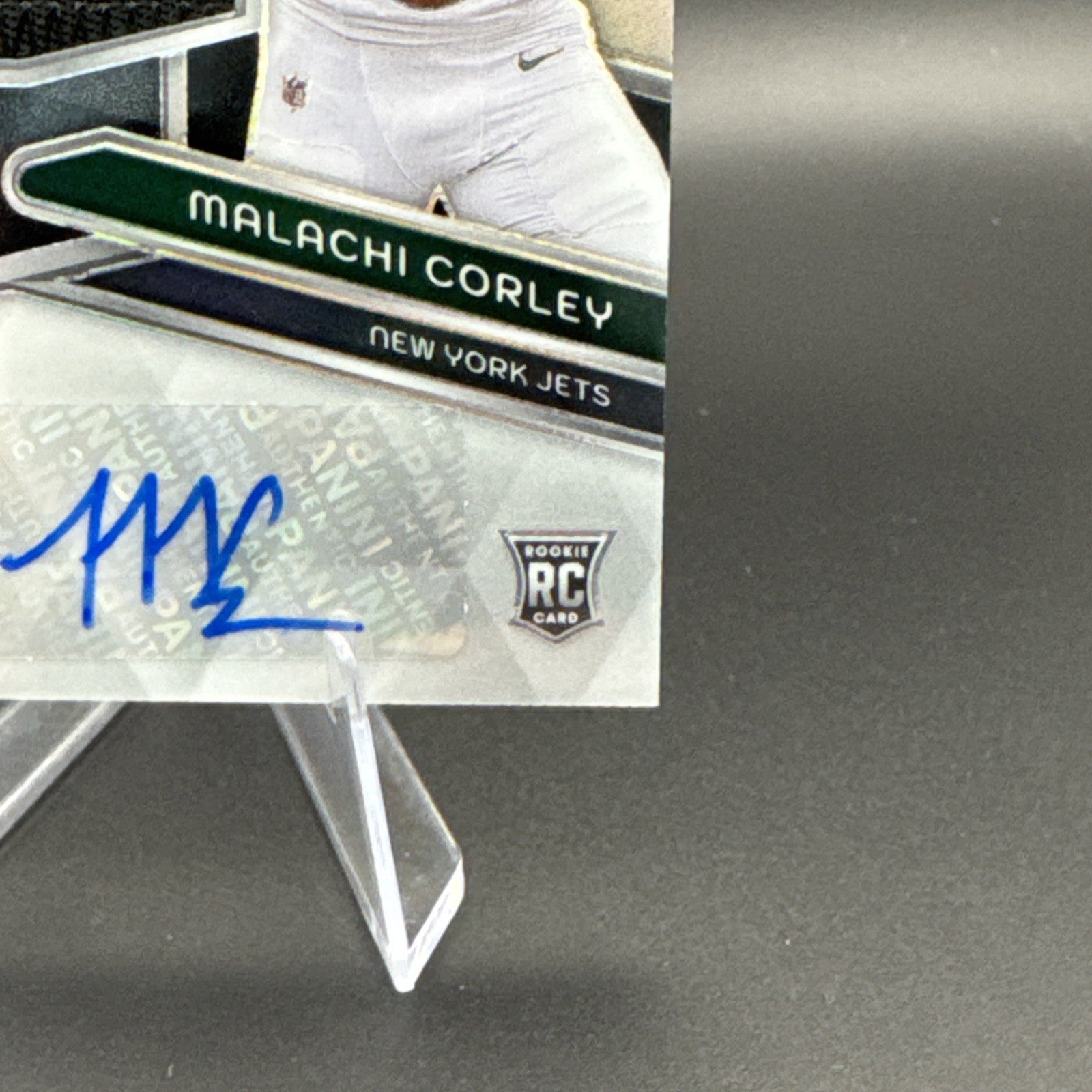 The 2024 Panini Spectra #214 Rookie Patch Autograph Malachi Corley 84/99 trading card is a highly collectible item in the sports trading card market. This card features an autographed label or sticker from Malachi Corley, a player in the National Football League (NFL) for the New York Jets. With a limited print run of 84/99, this card is made of card stock and includes a patch of memorabilia from the player. Authenticated by Panini Authentic, this original card is a valuable addition to any football card collection.