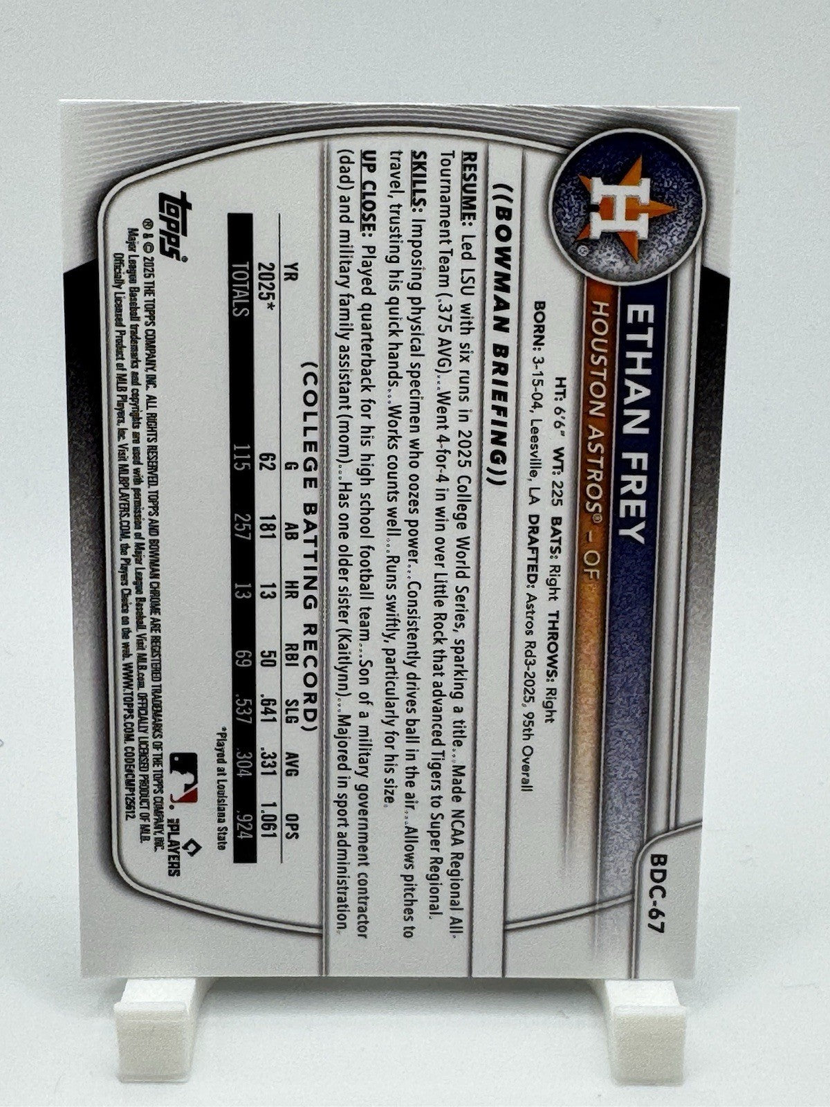 2025 BOWMAN DRAFT CHROME #BDC-67 ETHAN FREY BLUE SKY REFRACTOR HOUSTON ASTROS