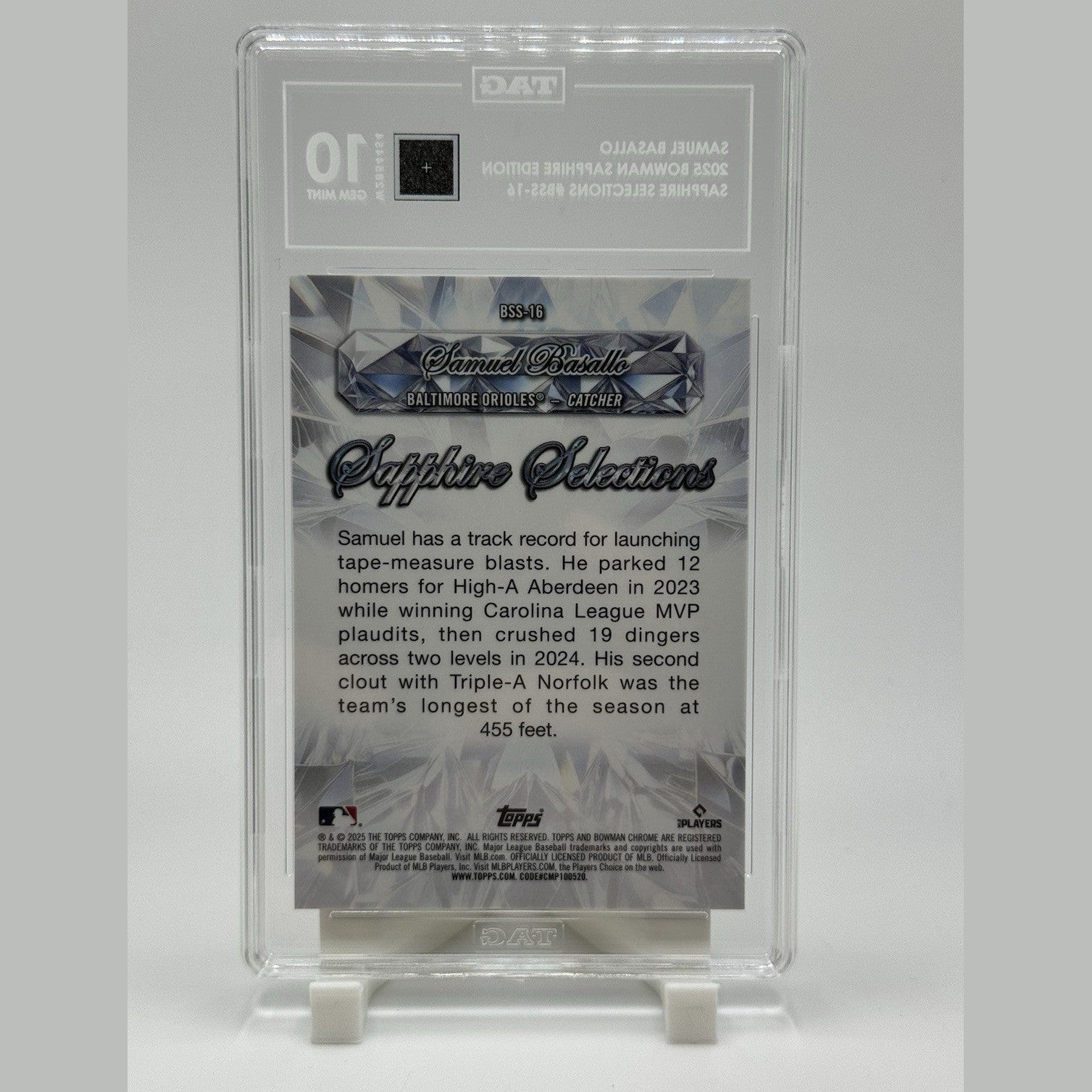 2025 Bowman Sapphire Samuel Basallo Selections #BSS-16 Orioles