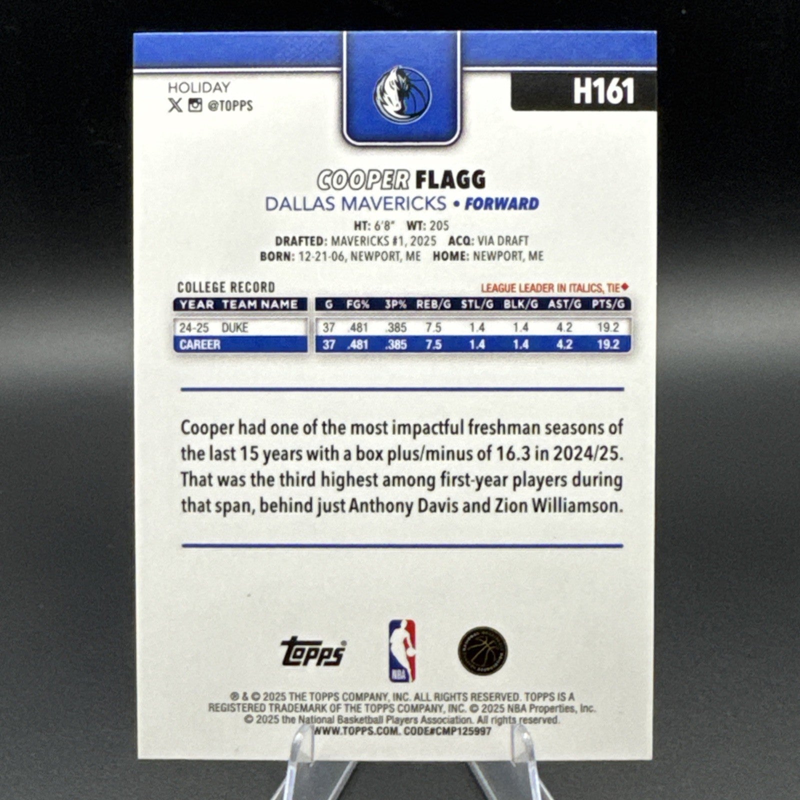 Cooper Flagg 2025-26 Topps Holiday Rookie #H161